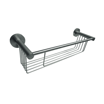 Shelf has open spaces between wires to allow excess water to drain away from items loaded and promote drying. Properly installed basket will support up to 10 lbs (4.5 kg) of bath products. Support side posts are 23/32″ diameter (Ø18) solid rod with polished cast mounting flanges bolted on. Finish on all visible stainless steel surfaces is satin.