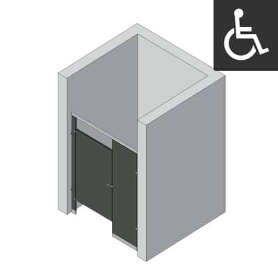 • ADA compliant stall measures 60″ x 60″ clear inside dimensions w/ 36″ outswing door