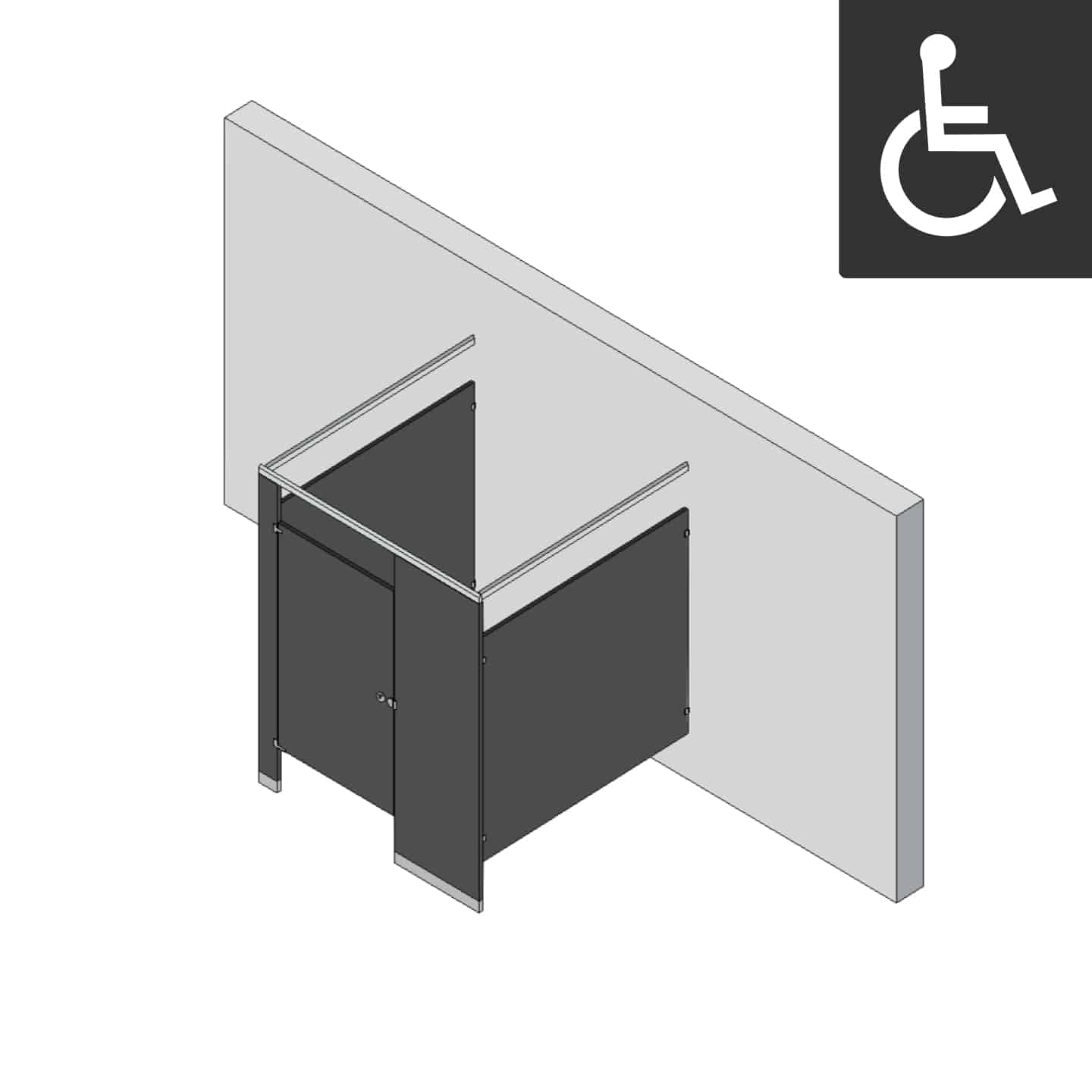 - ADA compliant stall measures 60″ x 60″ clear inside dimensions w/ 36″ outswing door