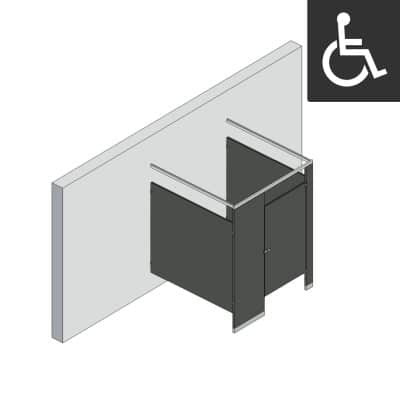 - ADA compliant stall measures 60″ x 60″ clear inside dimensions w/ 36″ outswing door