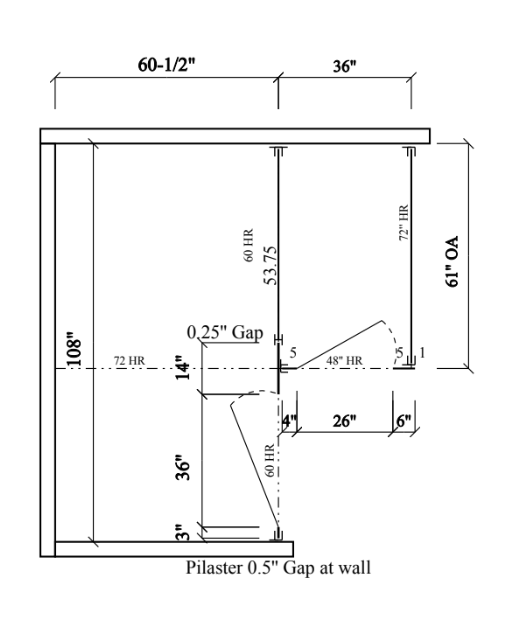 • Standard sized (non-ADA) stalls measure 36″ x 60″ w/ 26″ inswing door