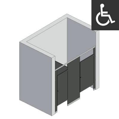 • ADA compliant stall measures 60″ x 60″ clear inside dimensions w/ 36″ outswing door
