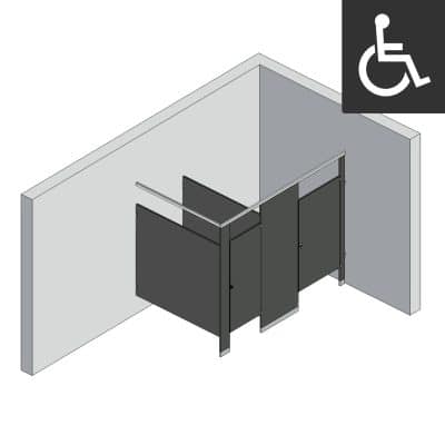 Get the perfect two toilet partitions with an ADA compliant stall for your right hand corner and provide comfort and accessibility to all your bathroom’s users. Order a standard size here or you can call, email or use our online tool to get a custom quote today. We offer multiple privacy heights, customizable color options and durable materials to stand up to moisture and traffic. Need more information, give our experts a call.