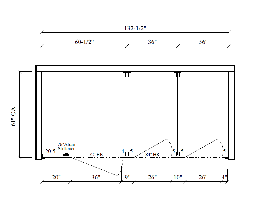 - Standard sized (non-ADA) stalls measure 36″ x 60″ w/ 26″ inswing door
