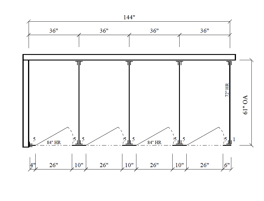 - Standard sized (non-ADA) stalls measure 36″ x 60″ w/ 26″ inswing door