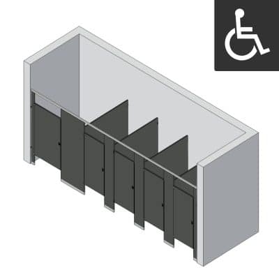 Bathroom Partitions – 5 Stalls – Left Hand Between Walls ADA