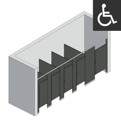 Bathroom Partitions – 5 Stalls – Right Hand Between Walls ADA