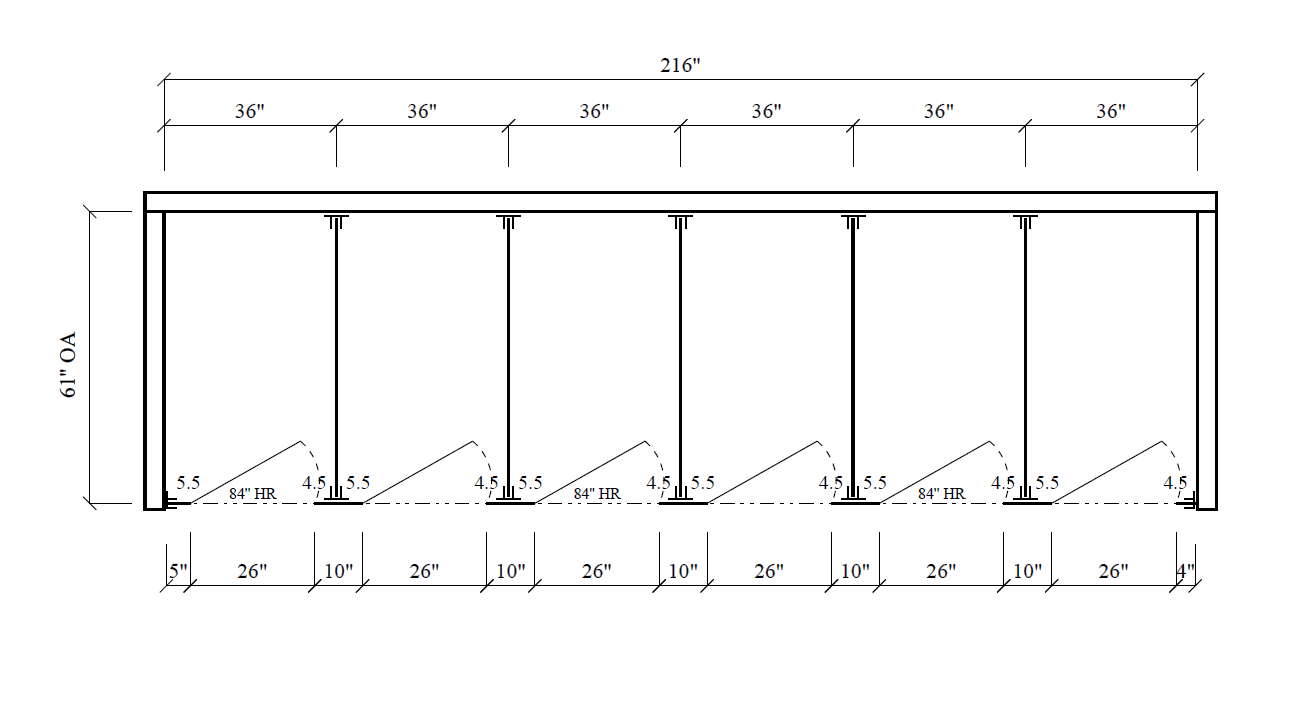 - Standard sized (non-ADA) stalls measure 36″ x 60″ w/ 26″ inswing door