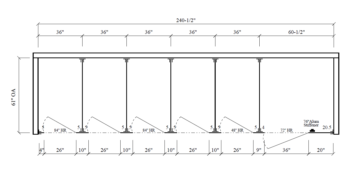 - Standard sized (non-ADA) stalls measure 36″ x 60″ w/ 26″ inswing door