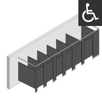- ADA compliant stall measures 60″ x 60″ clear inside dimensions w/ 36″ outswing door