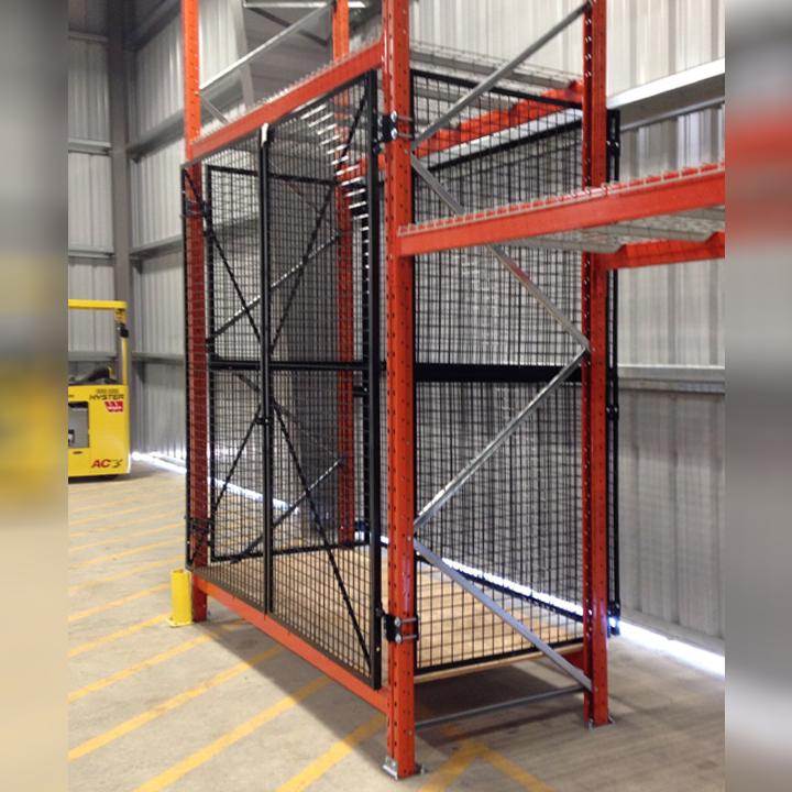 System of rigid wire mesh panels that prevent objects from falling off pallet rack storage – protecting materials and warehouse staff.