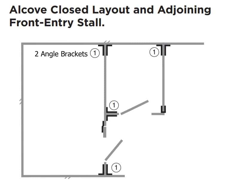 Bobrick Angle Brackets (#1001371) are used for partition to wall connections. The brackets are sold individually, however two angle brackets are required for each stile-to-wall connection and two are required for each panel-to-wall connection. These brackets are attached with #12 x 7/16″ and #12 x 2″ Pin-in-Head Torx Screws which are not included.