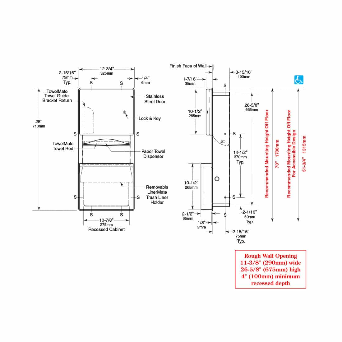 • Compatible with LinerMate and TowelMate accessories, from Bobrick