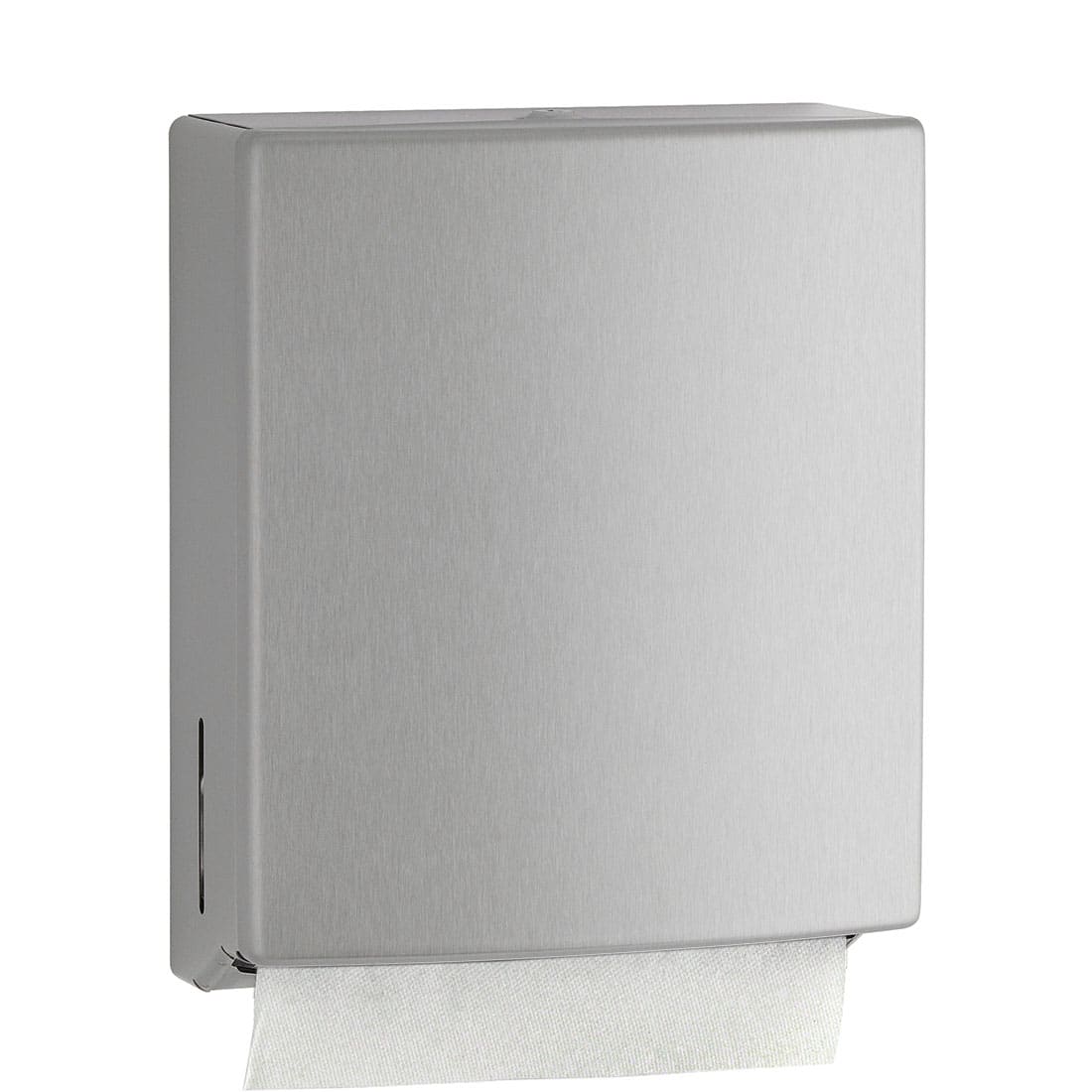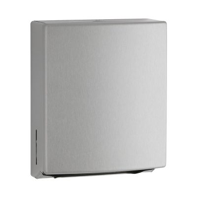 ‘ Match your paper towel dispenser to your other ConturaSeries restroom accessories with the Bobrick B-4262. This surface mounted paper towel dispenser offers a durable stainless steel cabinet, with all welded construction. Fine details – like a hemmed opening in the towel tray, snag-free recessed mounting slots, and a locking door to prevent vandalism – take this unit beyond the typical dispenser.