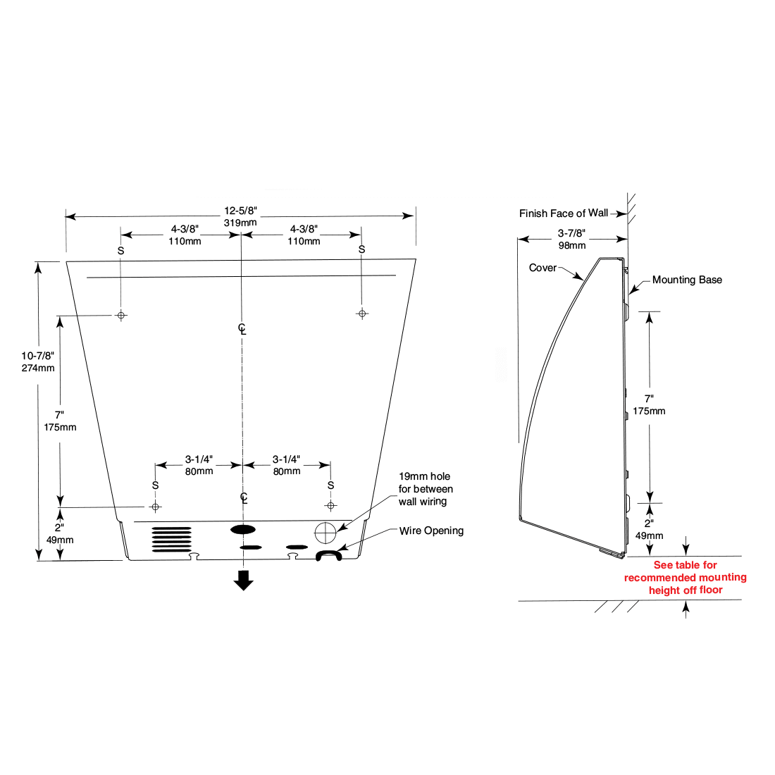 • Compact design projects 3-7/8″ from the wall’s face. 12-5/8″ wide and 10-7/8″ high