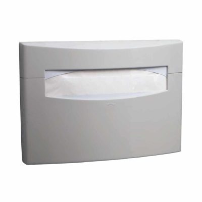 ‘ Match your other MatrixSeries accessories with this surface mounted seat cover dispenser from Bobrick. The high-impact gray ABS body is molded with the same degree of arc and radii as other MatrixSeries items. Install to allow 5” (125mm) from dispenser bottom to the top of any projection from the wall, as the unit fills from a concealed opening below. This dispenser holds 250 single or half folded seat covers, or one standard box.