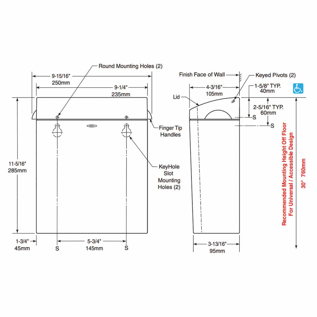 Bobrick Matrix Surface Mounted Sanitary Napkin Disposal B-5270