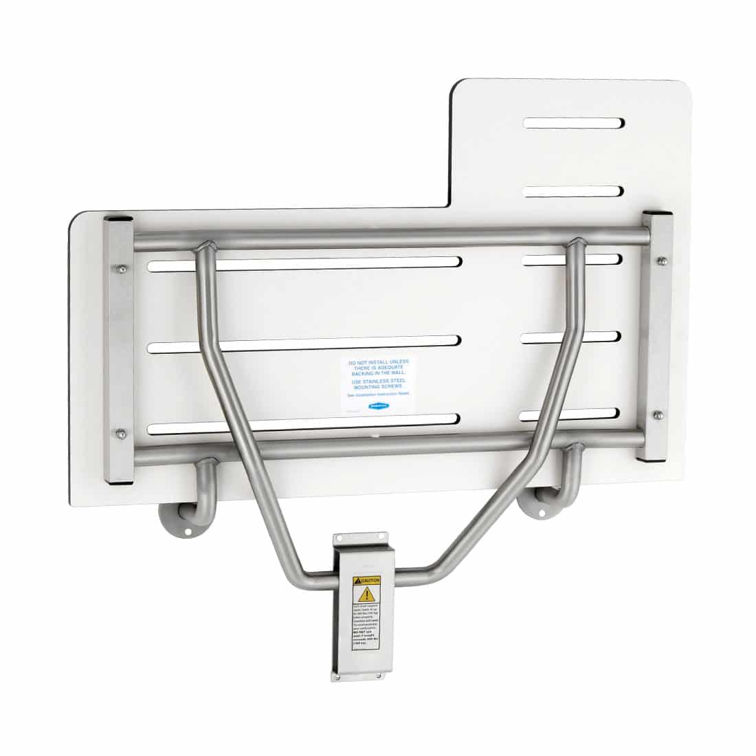 Looking for a shower seat that is compact and flexible, look no further than the Bobrick B-5181 Folding Shower seat. This seat is reversable making it usable for left- or right-hand installation. Need even more space than the compact design affords, fold this Bobrick seat up to make more room. Pull down to reveal a solid phenolic shower seat. Features drain holes and won’t support bacterial growth due to its material. Phenolic is a strong, non porous material that requires no maintenance. Enjoy both ADA compliance and ease-of-use with this unit. Need a more compact shower seat? Consider the Bobrick Solid Phenolic Folding Shower Seat B-5191.