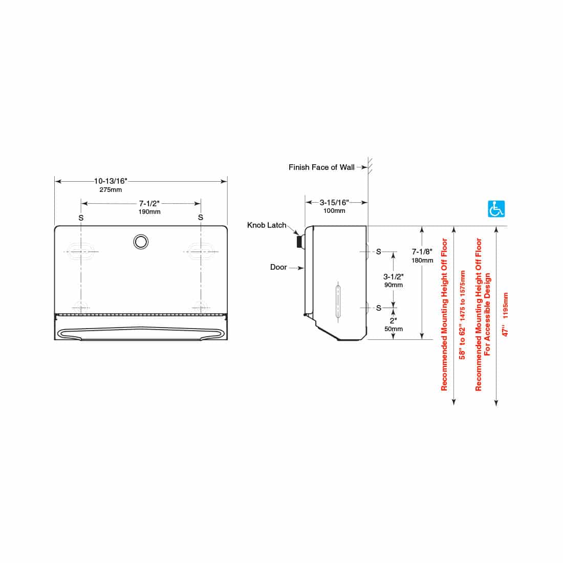 • Accepts 200 C-fold or 275 multifold paper towels