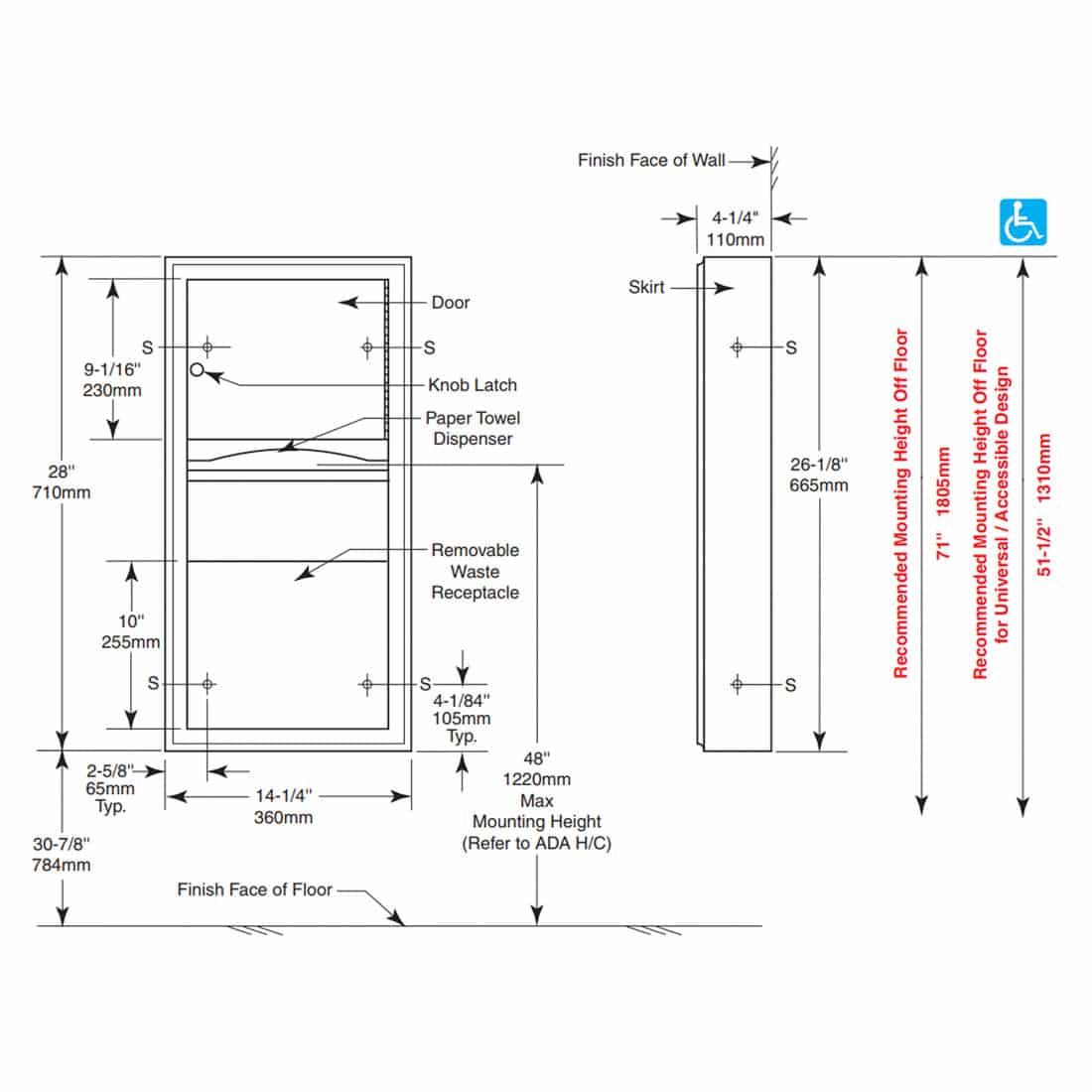 • Bobrick Flush Mount Paper Towel Dispenser and Waste Receptacle B-3940