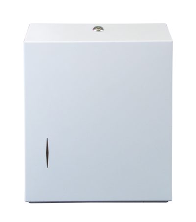 Bradley’s 250-33 White Enameled Surface-Mounted Towel Dispenser is made of corrosion resistant steel, secured with a lock, and holds up to 525 multi fold paper towels.