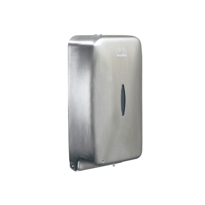 Bradley’s 6A03-11 Diplomat Liquid Soap/Gel Sanitizer Dispenser is a part of Bradley’s luxury diplomat series characterized by gentle curving structures and easy-to-use accessories in all areas of the bathroom. The dispenser is made to hold up to 27 ounces of liquid and gel soap, held safe by a locking mechanism and vandalism resistant cover. The automatic dispenser is battery powered (batteries not included) making it even easier to install and maintain and is made of brushed stainless steel giving it a sleek look to blend with any bathroom. The touch free operation will not only keep the unit cleaner but allow users to clean their hands without further contamination, a highly desired luxury in modern bathrooms. Check out the Bradley 6A03-11 Diplomat Liquid Soap/Gel Sanitizer Dispenser and see if it is the right choice for your bathroom.