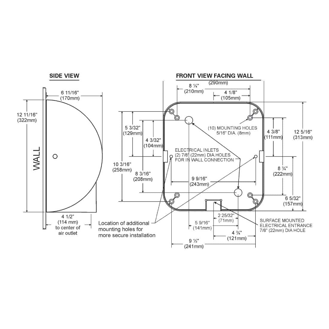 - Overall dimensions of 11 ¾” (298mm) wide by 12 11/16” (322mm) high