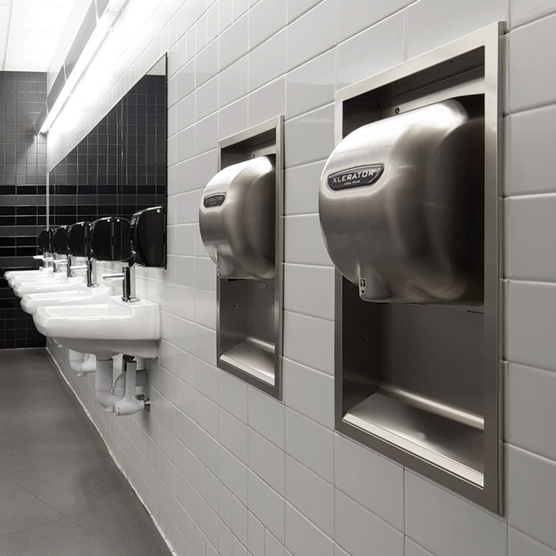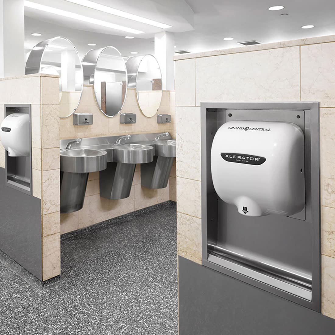 A range of options (PDF) let you tailor the XLERATOR to your needs. Meet accessibility requirements with the Recess Kit, protect restroom walls using Antimicrobial Wall Guards, and easily replace a towel dispenser and waste bin combination unit using the XChanger Retrofit Kit.
