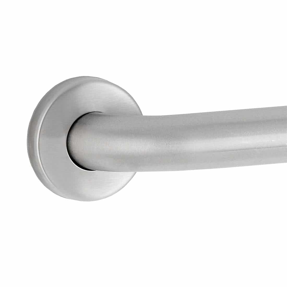 All included grab bars are Bobrick B-6806 series units that are manufactured from satin finish stainless steel tubing. The bars have a 1 ½” (38mm) outside diameter. The grab bar tubing is 18-8 S, type 304, 18 gauge stainless, while the concealed mounting flanges are 18-8 S, type 304, 11 gauge stainless. Snap covers are 18-8 S, type 304, 22 gauge stainless.