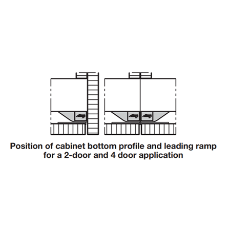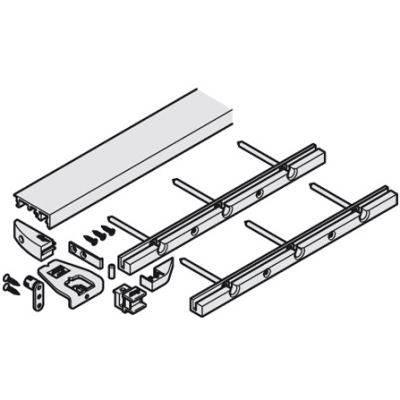 Use this kit with the Hawa Concepta 25 Folding/Sliding door hardware system when the folding door panels overlay the top and bottom cabinet panels. The bottom profile allows door panels to sit flush when closed.