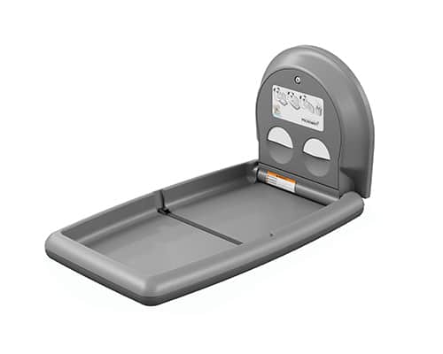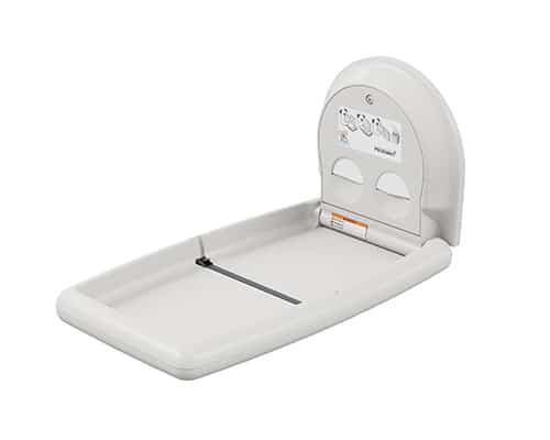 For a classic baby changing station from a trusted brand Koala Kare’s vertical wall mounted KB301 baby changing station is an excellent option. Koala Kare has been a family trusted brand for decades, putting the safety and comfort of it’s products users first. This changing station is ADA compliant, sturdy, and modern looking, making it perfect for any bathroom. It comes in three color options: cream, gray and white granite offering further customizability to match your restroom. The KB301 changing station is also safety conscious with easy to use child protection straps and a microbial resistant material that lets parents have confidence in the station they are using. The unit is practical as well with a liner cavity that holds up to 25 liners and is lockable to help prevent vandalism which means that they need to be refilled less often. For the customer looking for a traditional looking baby changing station with modern upgrades the KB301 is a great choice.