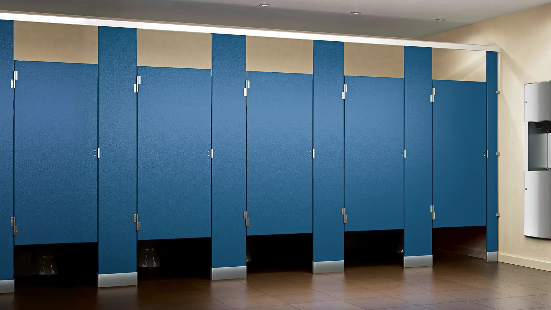 Solid Phenolic partitions boast many benefits including the customizability of HPL and the moisture resistance of Solid Plastic. Because of this it makes an excellent option for almost any bathroom. With its solid core and melamine layer the Phenolic bathroom partitions are also highly durable and graffiti resistant making them able to stand the test of time. While solid phenolic bathroom stalls do come at a higher price point than other stalls their easy maintenance and resistances to damage make them an investment well worth the price. Paired with their near endless customizability, phenolic toilet partitions are able to satisfy just about any customer.