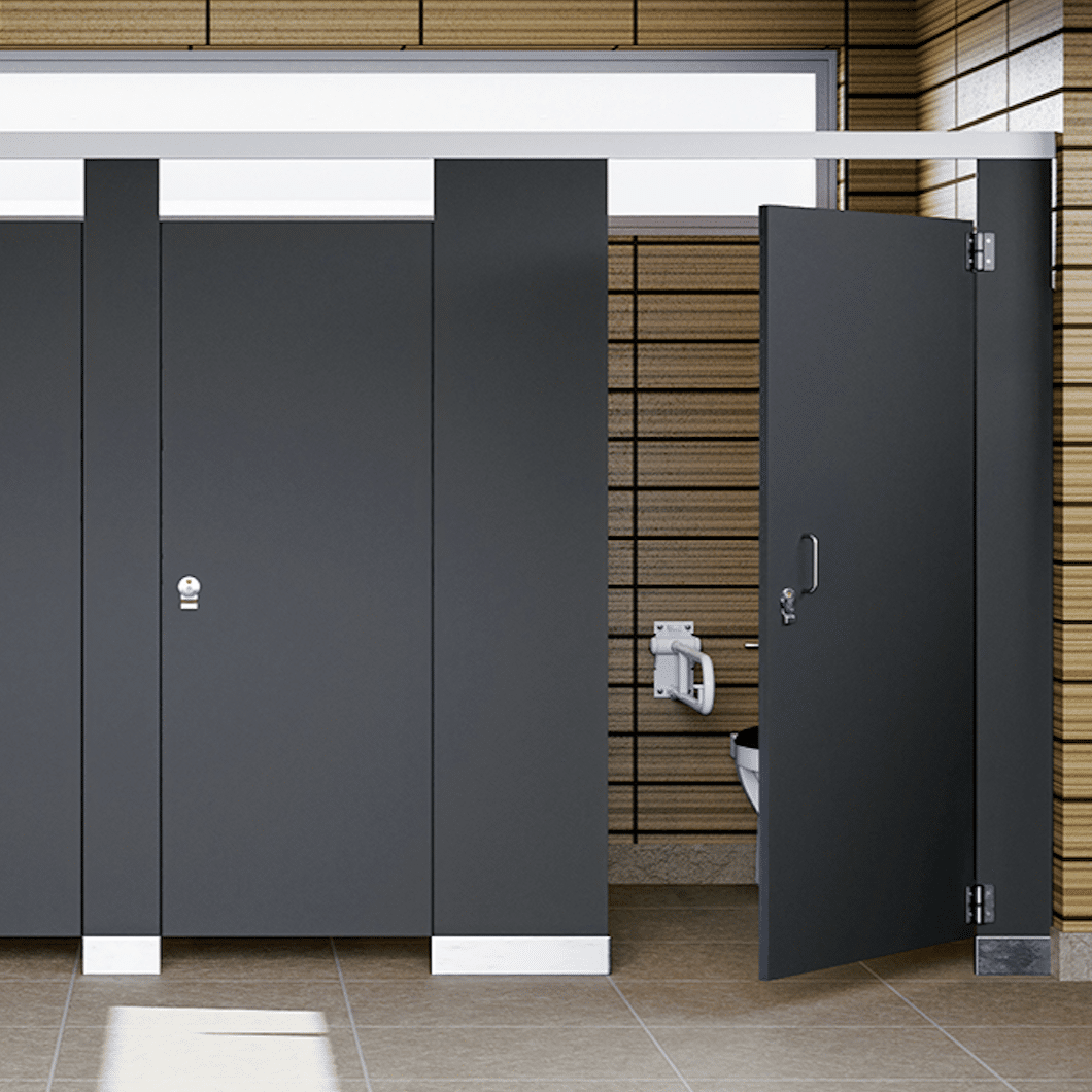 Solid Phenolic partitions boast many benefits including the customizability of HPL and the moisture resistance of Solid Plastic. Because of this it makes an excellent option for almost any bathroom. With its solid core and melamine layer the Phenolic bathroom partitions are also highly durable and graffiti resistant making them able to stand the test of time. While solid phenolic bathroom stalls do come at a higher price point than other stalls their easy maintenance and resistances to damage make them an investment well worth the price. Paired with their near endless customizability, phenolic toilet partitions are able to satisfy just about any customer.
