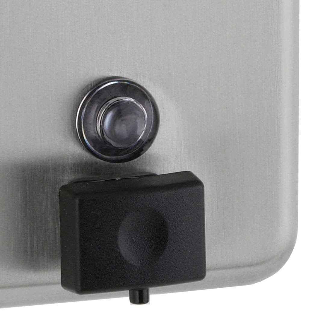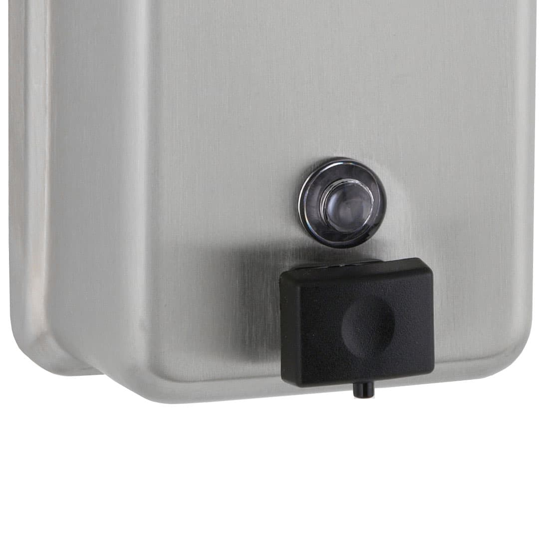 - Restocking is easy with soap refill window and locking hinged filler top