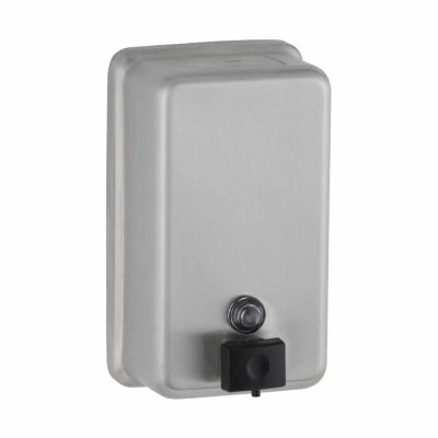 A liquid soap dispenser from Bobrick in satin-finish stainless steel. The B-2111 is part of the ClassicSeries. It is designed to coordinate with other ClassicSeries bathroom accessories from Bobrick, but looks great in any restroom. Features a time tested design. A vertical tank alternative to the Bobrick Classic Surface Mount Soap Dispenser B-2112.- Satin finish stainless steel